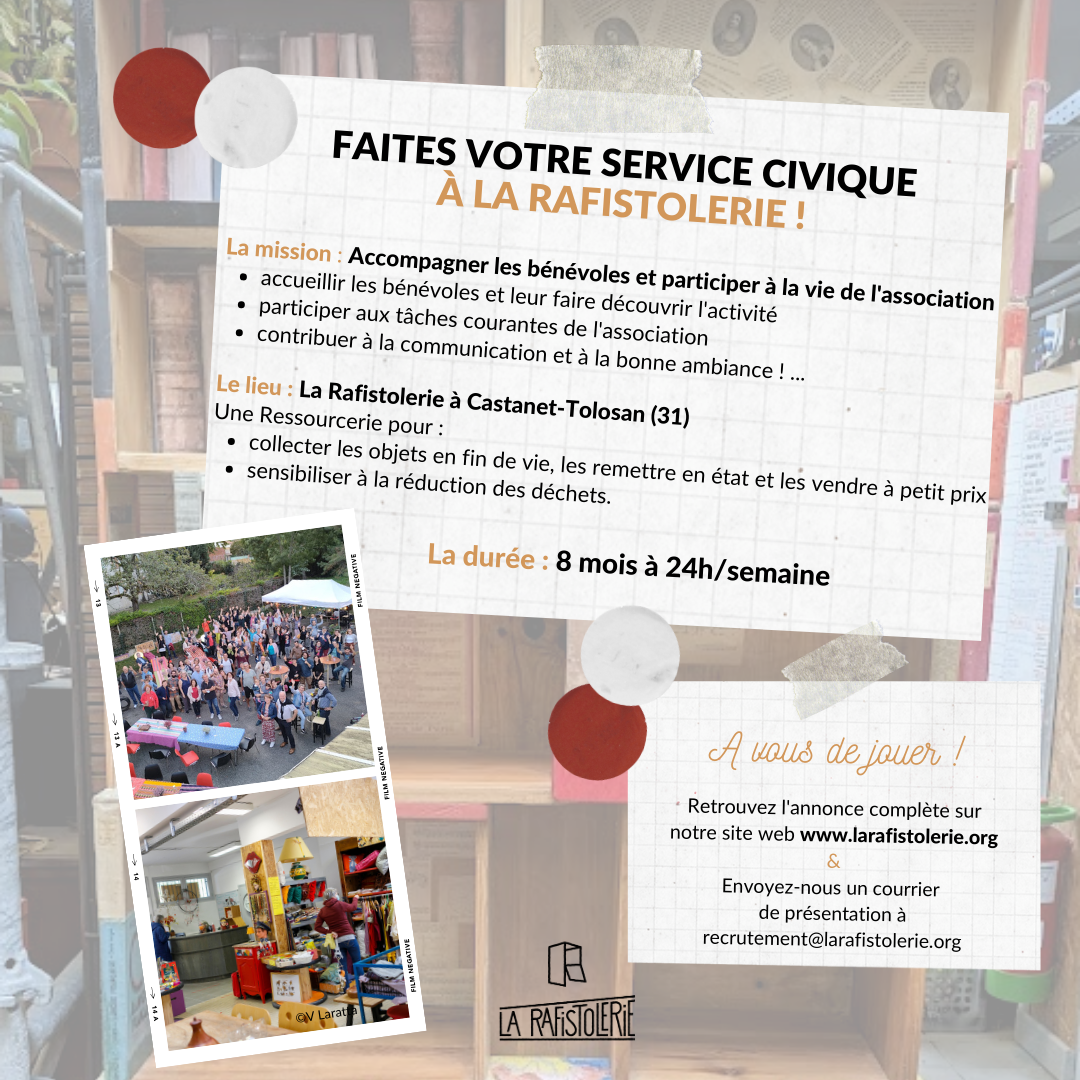 Dans le cadre de son atelier et chantier d’insertion, la Rafistolerie réserve 4 postes d’employé·es polyvalent·es de Ressourcerie en contrat à durée déterminée d’insertion pour des personnes éloignées de l’emploi. Si vous êtes intéressé·e, retrouvez nos offres en cours et vérifiez votre éligibilité à ce dispositif sur la plateforme de l’inclusion.